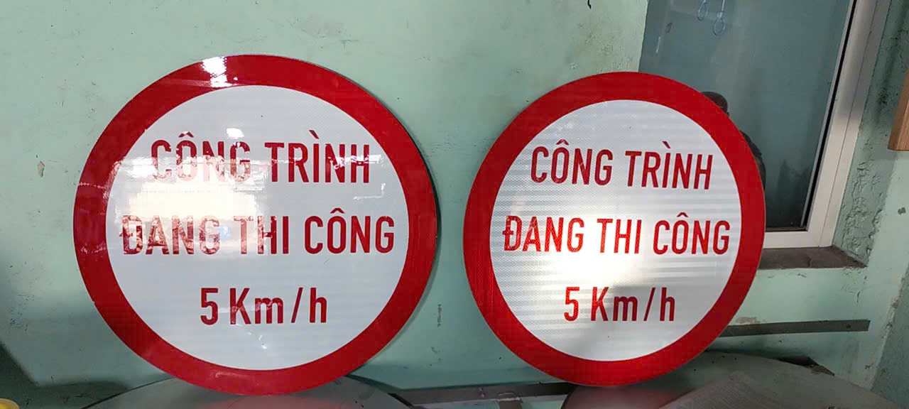 - Biển báo giao thông hình tròn được sơn và dán decal phản quang 3M.